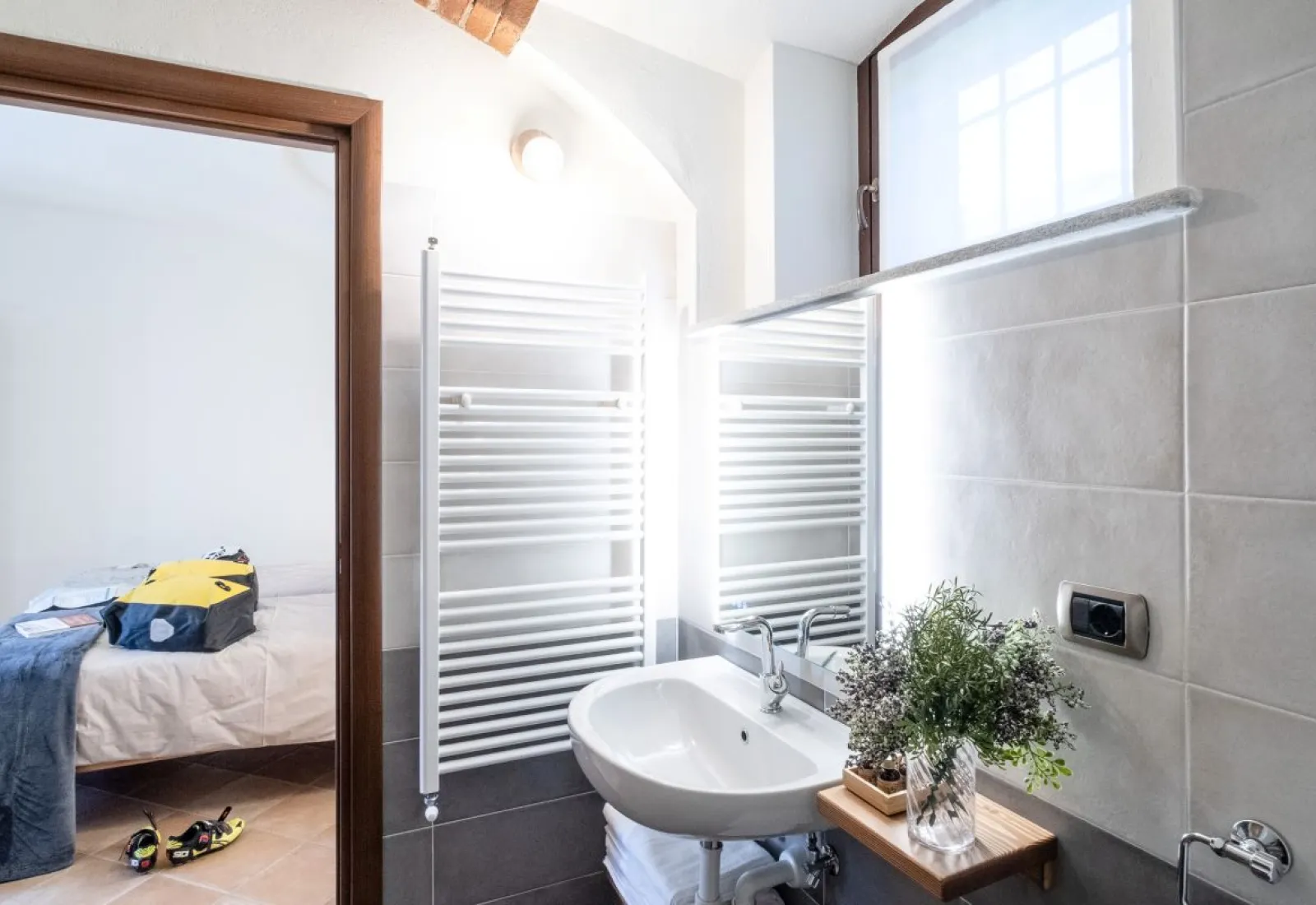 from 45 € per nightCorner triple room, with three single beds or one double bed and one single bed. It offers maximum peace and quiet, as there are no neighbouring rooms, and overlooks the pergola, facing a mulberry tree.