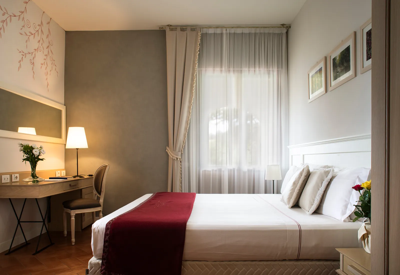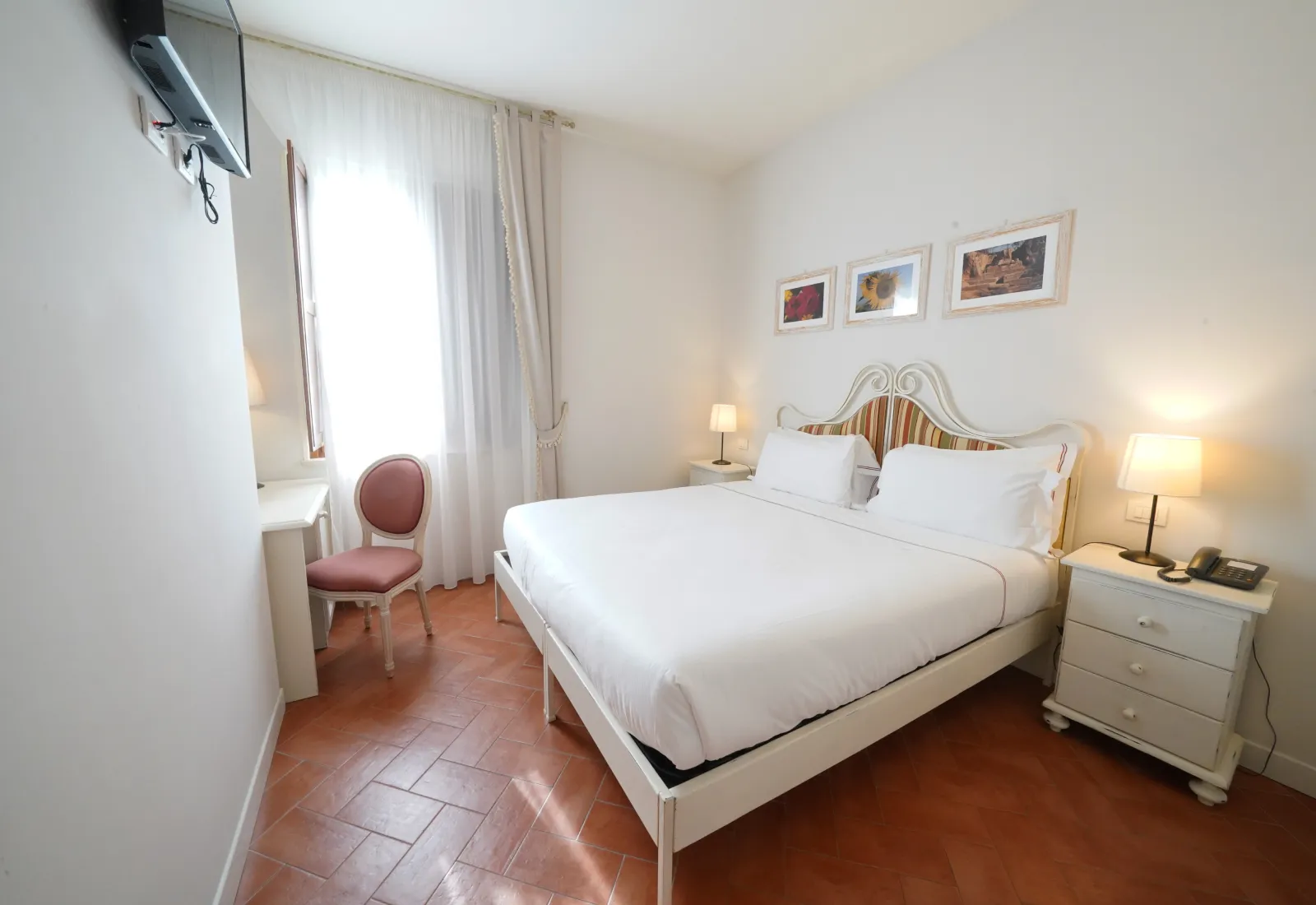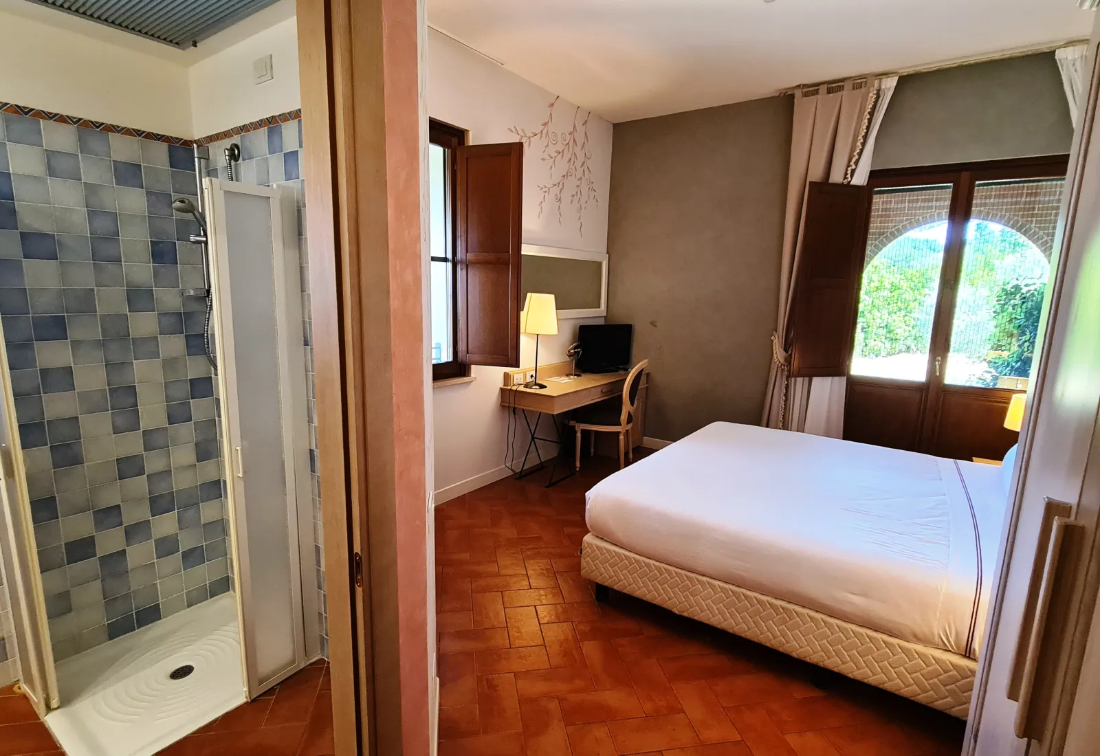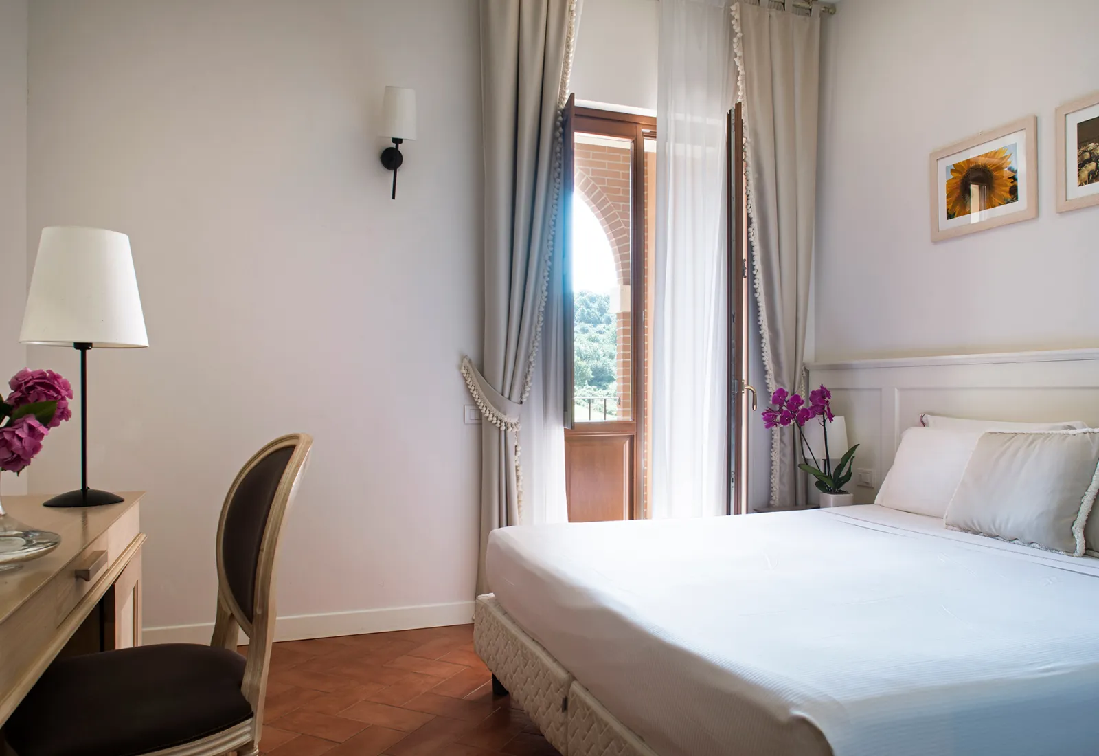 from 70 € per nightRooms of 16–18 sqm, featuring soft tones and amenities designed to ensure maximum comfort. The bathroom includes an enclosed shower and a courtesy set. Some room types also feature a small balcony.