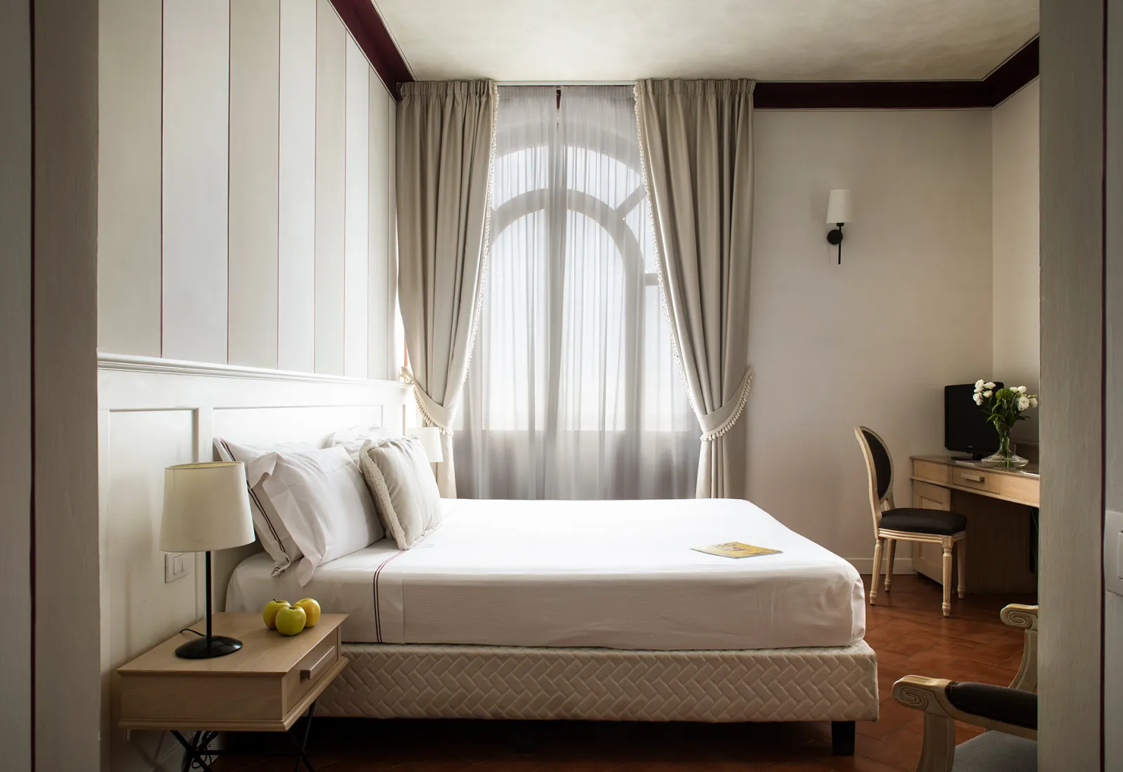 from 50 € per nightIntimate and welcoming rooms of 14 sqm, featuring elegant furnishings. The bathroom includes an enclosed shower and a courtesy set.