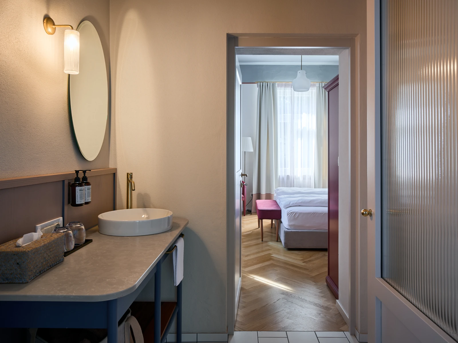 from 113 € per night45 sqm two-room suite sleeping up to 4 guests. The Prestige Suites feature a balcony, a king-size bed with Simmons mattress, a living area with a comfortable sofa bed, bathroom with shower and separate toilet with bidet. Guests also enjoy bathrobes and slippers, plus safe, minibar, kettle, coffee machine and air conditioning.