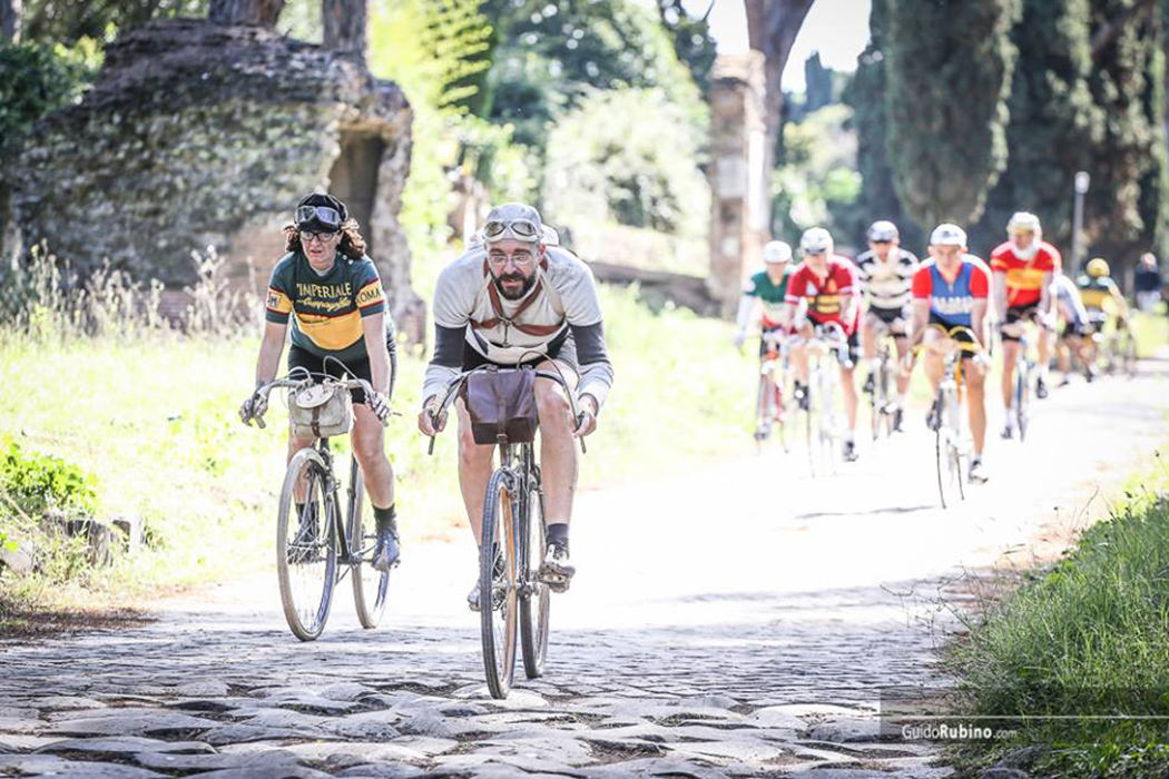 In an extraordinary town where time seems to stop, bicycles from different eras parade along the streets, timeless examples that have shaped the history of the sport and much more. Charm, tradition and modernity in fact characterise “L’imperiale”. An event of rare beauty in the ancient city of Rome, rich in art, history, centre of Christianity and capital of Italy: departing from the Roman Forum cyclists make their way along the Appian Way, once a hunting ground for champions in the Giro del Lazio, a classic in cycling books, and then Porta San Sebastiano and the Caffarella Park. Cycling of the yesteryears, at times on equally ancient roads.